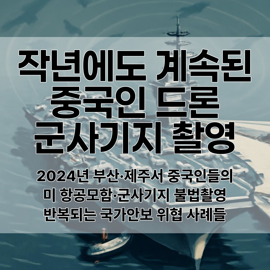 2024년에도 제주와 부산에서 중국인들의 드론 불법 촬영 사건이 잇달아 발생했어요. 특히 부산에 정박 중이던 미국 항공모함을 촬영한 영상이 중국 SNS에 광범위하게 유포되는 일까지 벌어졌죠.