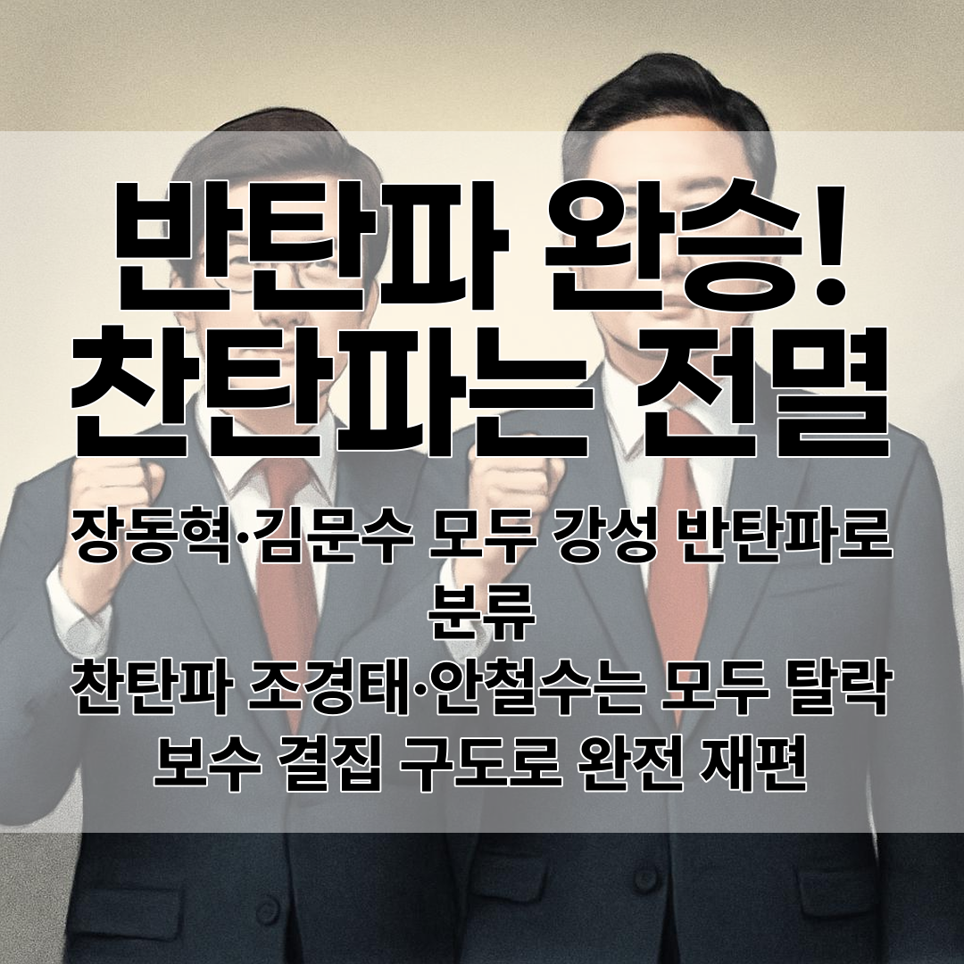 이번 결선의 가장 큰 특징은 반탄파의 완전한 승리라고 볼 수 있어요. 결선에 진출한 장동혁, 김문수 두 후보 모두 반탄(탄핵 반대)파로 분류되거든요.