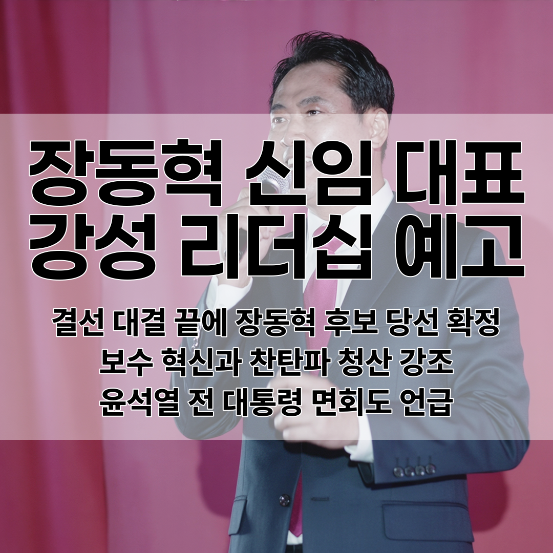 치열한 결선 대결 끝에 장동혁 후보가 국민의힘 신임 당대표로 최종 당선됐어요. 장 신임 대표는 취임 연설에서 '보수 혁신과 찬탄파 청산'이라는 강력한 메시지를 내세웠습니다.