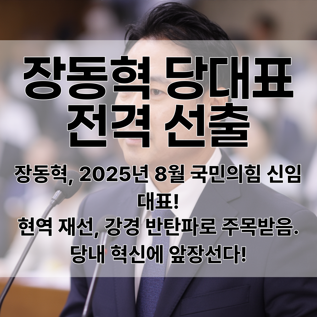장동혁 의원이 여야를 놀라게 하며 2025년 8월 국민의힘 신임 당대표로 전격 선출됐습니다! 🔥 충남 보령·서천에서 활동해온 대표적 재선 의원으로, 당내에서는 탄핵 반대 노선의 신념이 강한 인물로 평가받아왔죠.