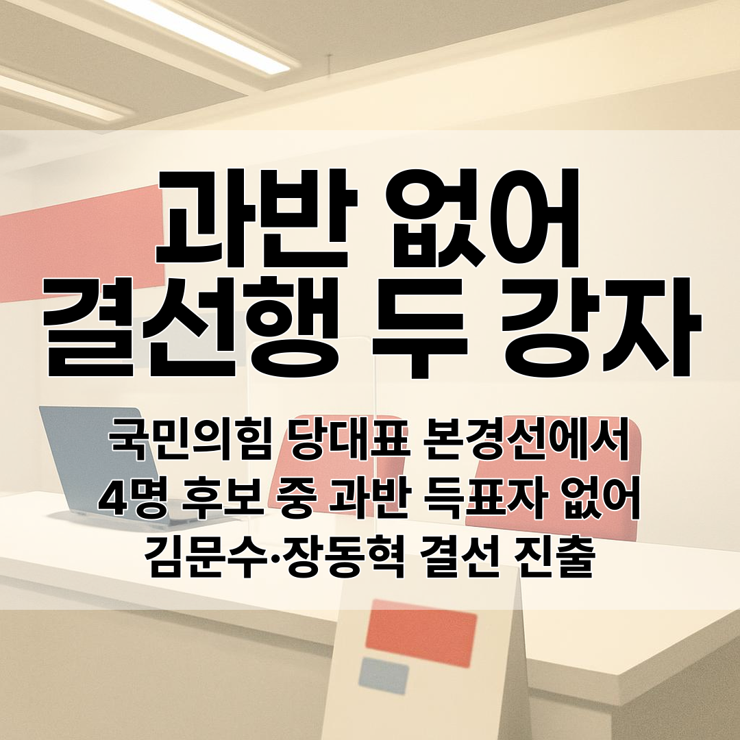 국민의힘 제6차 전당대회 당대표 본경선이 치열한 접전 끝에 결선 투표로 넘어가게 됐어요. 김문수, 안철수, 장동혁, 조경태 등 4명의 후보가 치열한 경합을 벌였지만, 아무도 과반 득표를 달성하지 못했거든요.