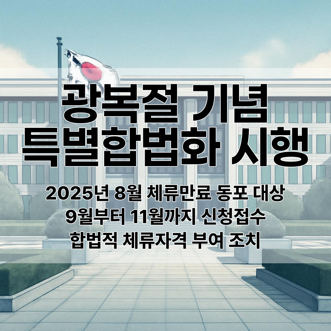 법무부가 광복 80주년을 기념해 특별한 정책을 발표했어요. 2025년 8월 18일 이전에 체류기간이 만료된 외국국적 동포와 가족들에게 합법적 체류 자격을 부여하겠다는 거죠.